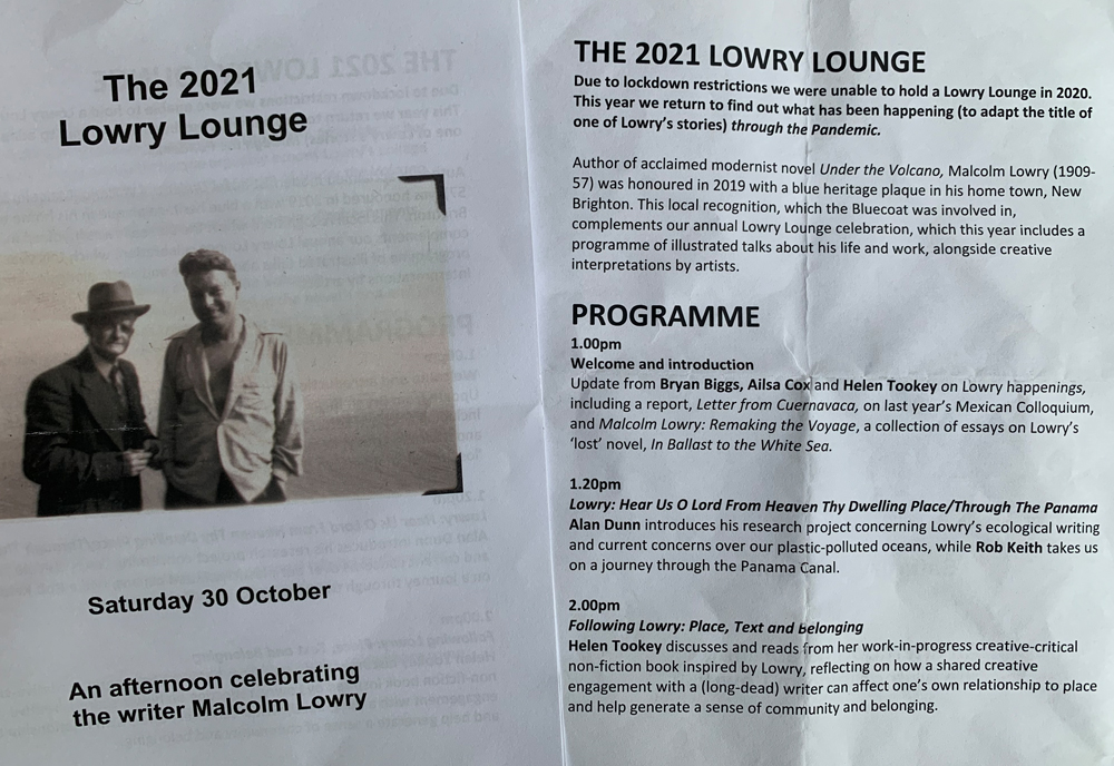 The Lowry Lounge celebrates Malcolm Lowry by bringing together academic papers on his work with creative interpretations by artists. This year, myself and Malcolm (aka Rob Keith) gave a
